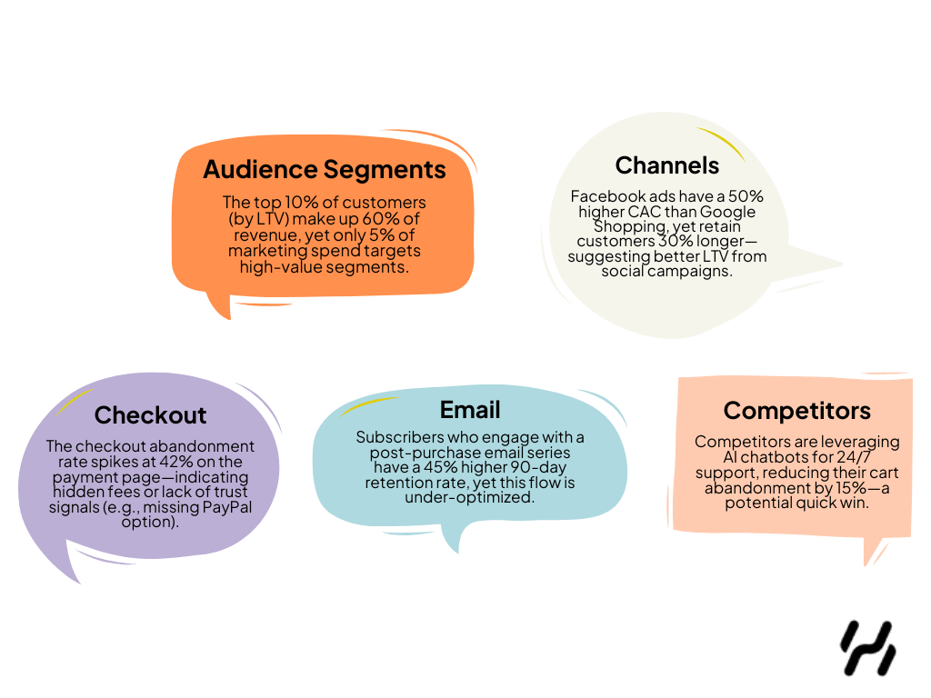 (Funnel drop-offs, underperforming segments, misattribution) - “What’s really driving our conversions?”